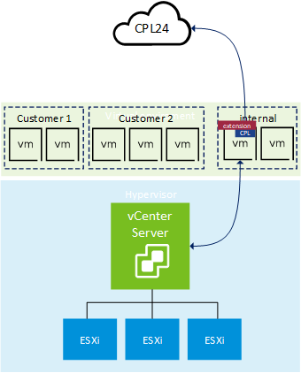 To be able to inherit Windows Server Standard Core from Core Infrastructure DC Core for example, CPL needs to know where (on which host) the VM is running. For that, there is the VMwareInventory extension. After collecting the information from the host-vm, the program searches for any extension nearby and execute that. The extension connects via tcp/443 to the vCenter and reads the vm attributes. In the end, one xml with the information about the host-vm and the results from vCenter will be sent to the backend. A documentation on how to configure can be found here.