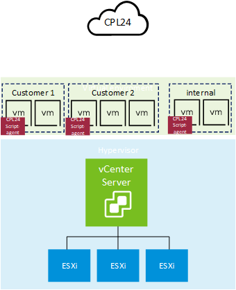 Let`s pretend, you have a VMware based enviroment with two seperate customers and some internal use VMs. We want to use the distribution tool that is delivered with CPL24 (ScriptAgent Server).