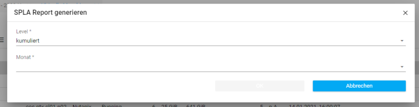 To generate a SPLA report just enter your desired level and select any day of the month you want to report. When you click OK then a Excel File is generated and downloaded by your browser.
