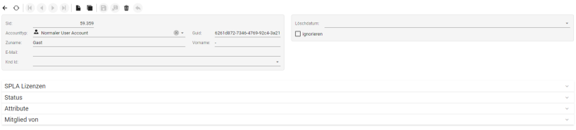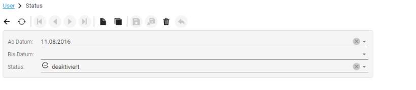 Here you can see a history of the users state. Also you are able to edit or add a state. Normally entries are generated/updated automatically with the data read out of the Active Directory.
