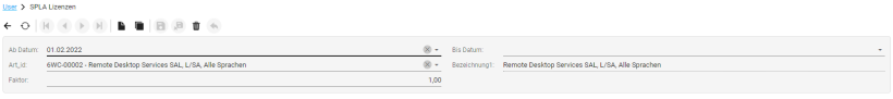Here you can view/add/modify SPLA entries for the user. Normally entries are generated/updated automatically based on the group matches defined in the customers section.